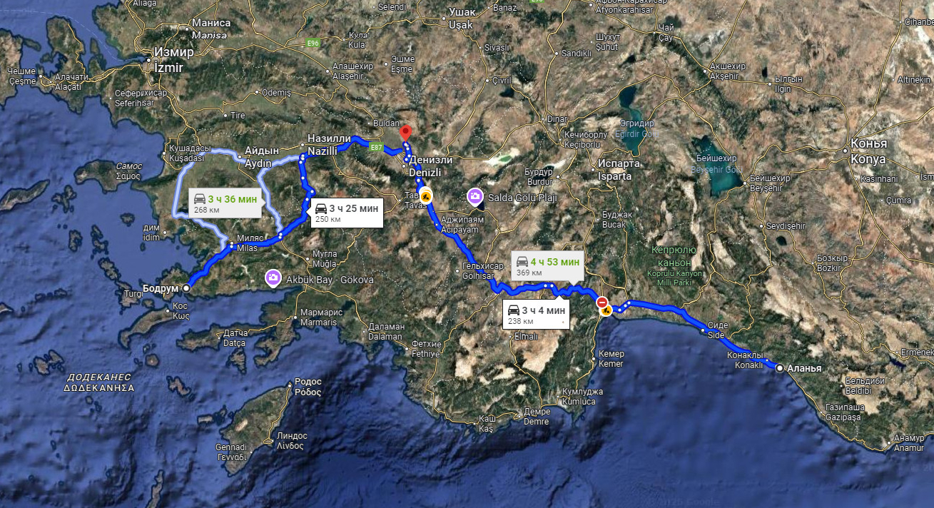 Как добраться до Памуккале (из разных ближайших курортов Анталии, Бодрума, Аланьи)