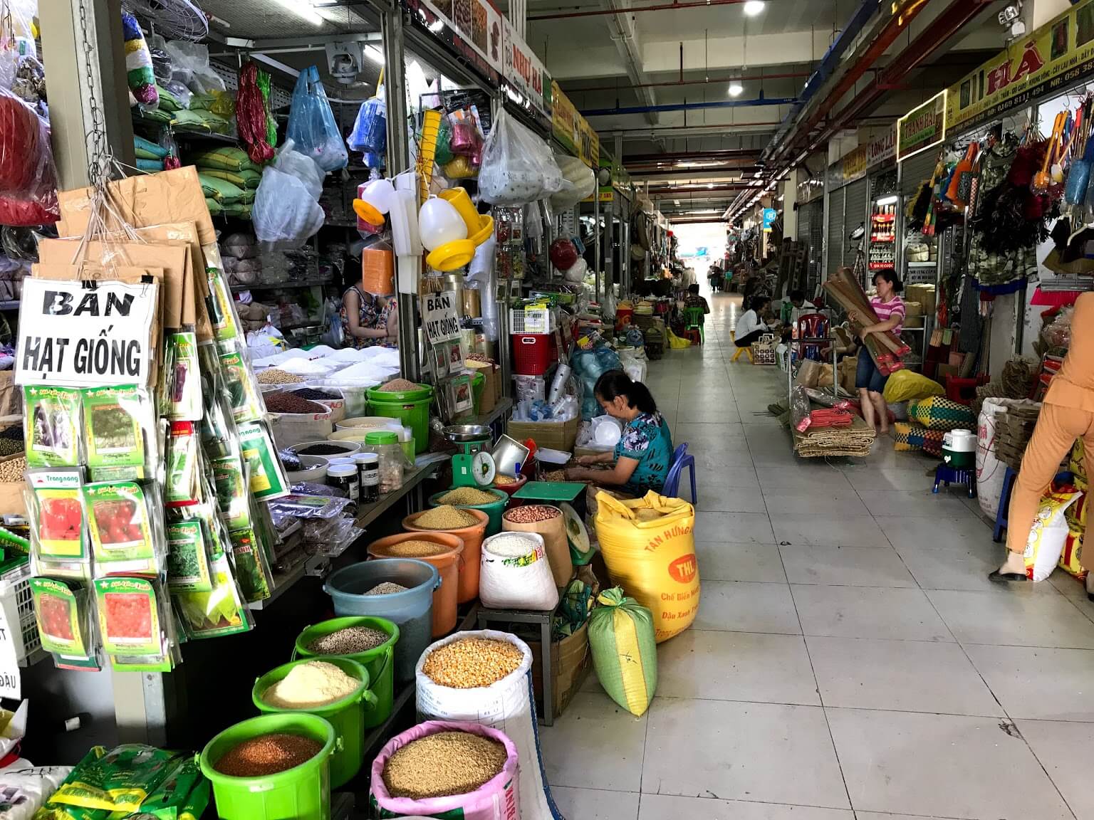 График работы стандартный – рынок работает до 9 часов. Некоторые торговцы сворачиваются к середине дня и продукты покупателям отдают почти даром. Рынок расположен вблизи европейского квартала, на пересечении улиц Ngo Gia Tu и Huynh Thuc Khang, в пешей доступности от большинства отелей.